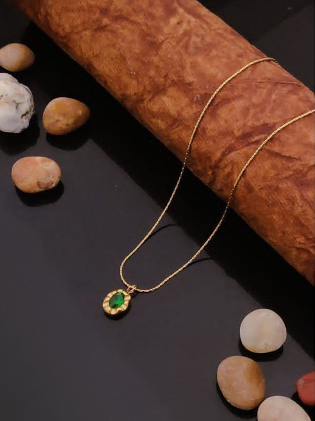 Shine with elegance in this radiant green stone pendant necklace, framed in a floral gold design. Perfect for festive occasions, party looks, or daily glam. Lightweight, anti-tarnish, and loved by Indian fashion lovers.