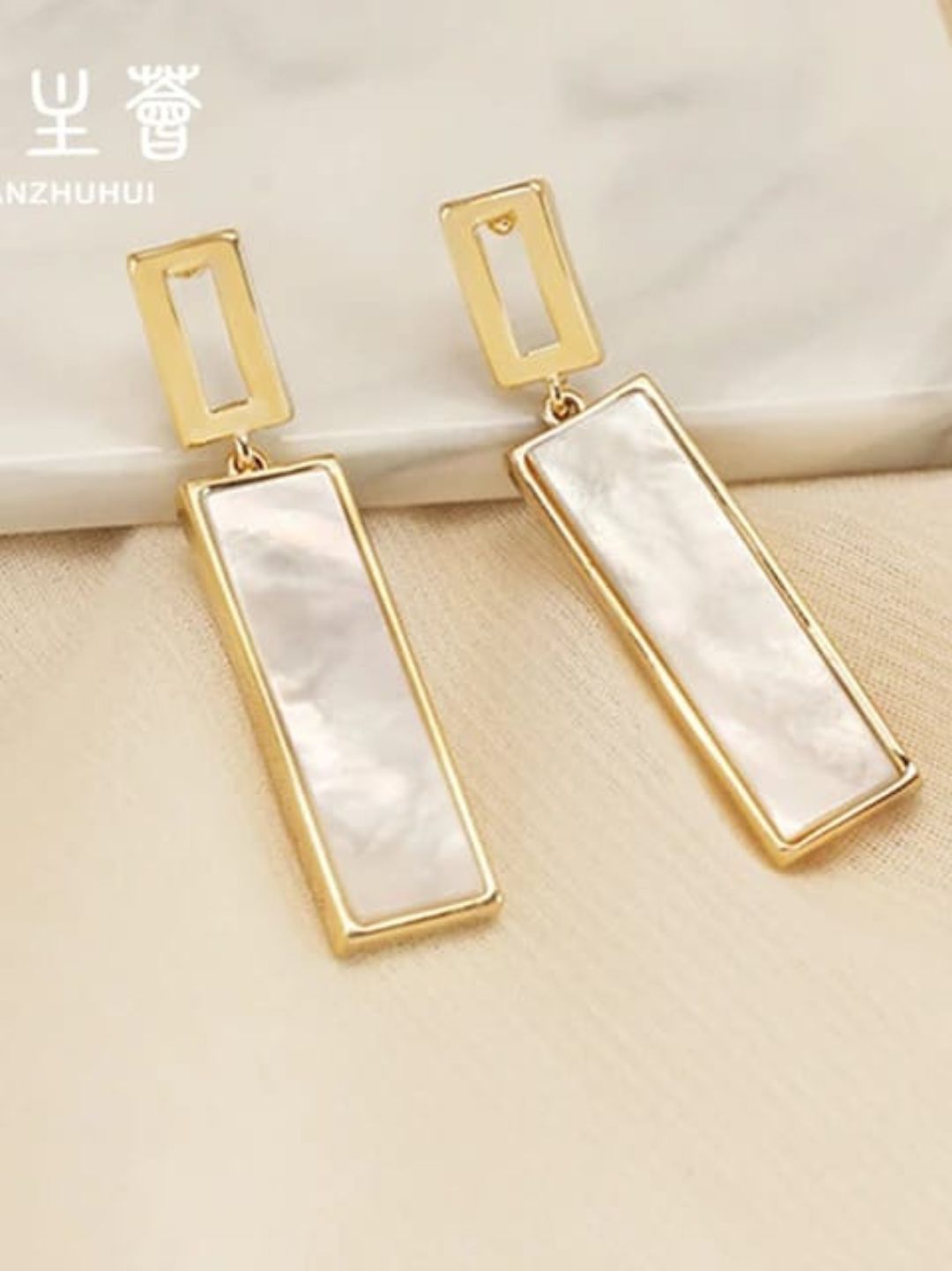 KOREAN RECTANGLE SHELL DROP EARRINGS